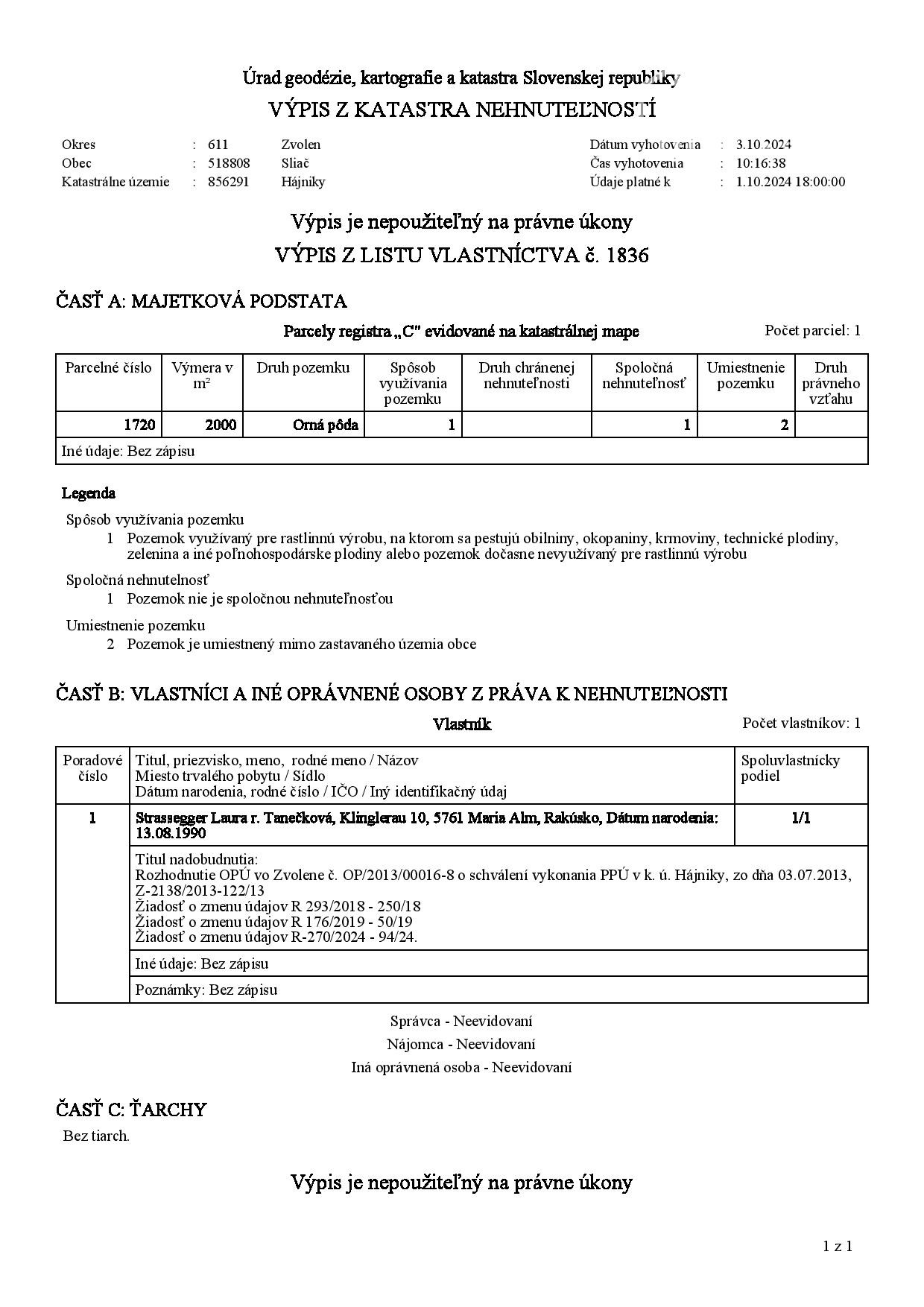 Cena je konečná vrátane kompletného katastrálneho a právneho servisu.