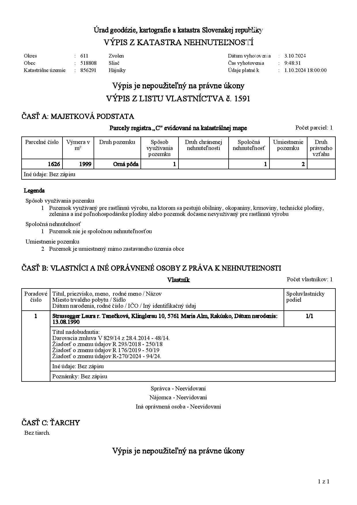 | Typ pozemku: | Orná pôda |